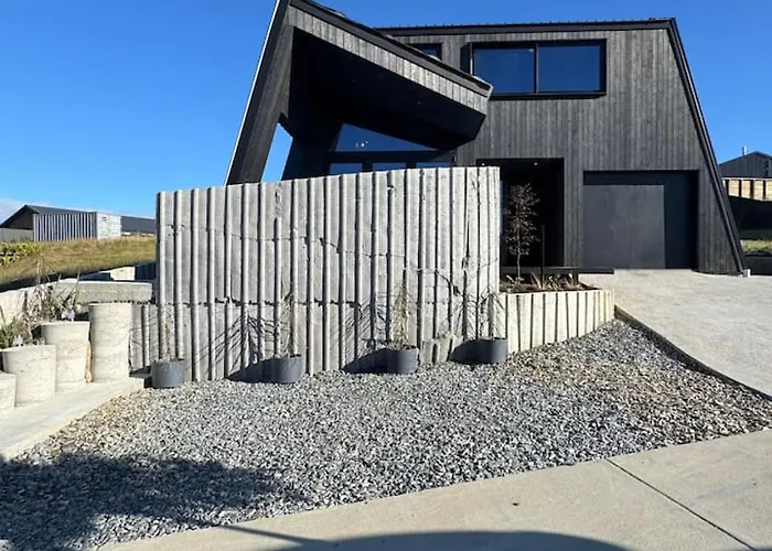 Wanaka Architectural Lake And Mountain Views villa has an equipped kitchen fitted with oven and a dishwasher. This Wanaka villa is in proximity to Good Roots serving healthy dishes. Queenstown airport is 44 miles away from the Wanaka property.